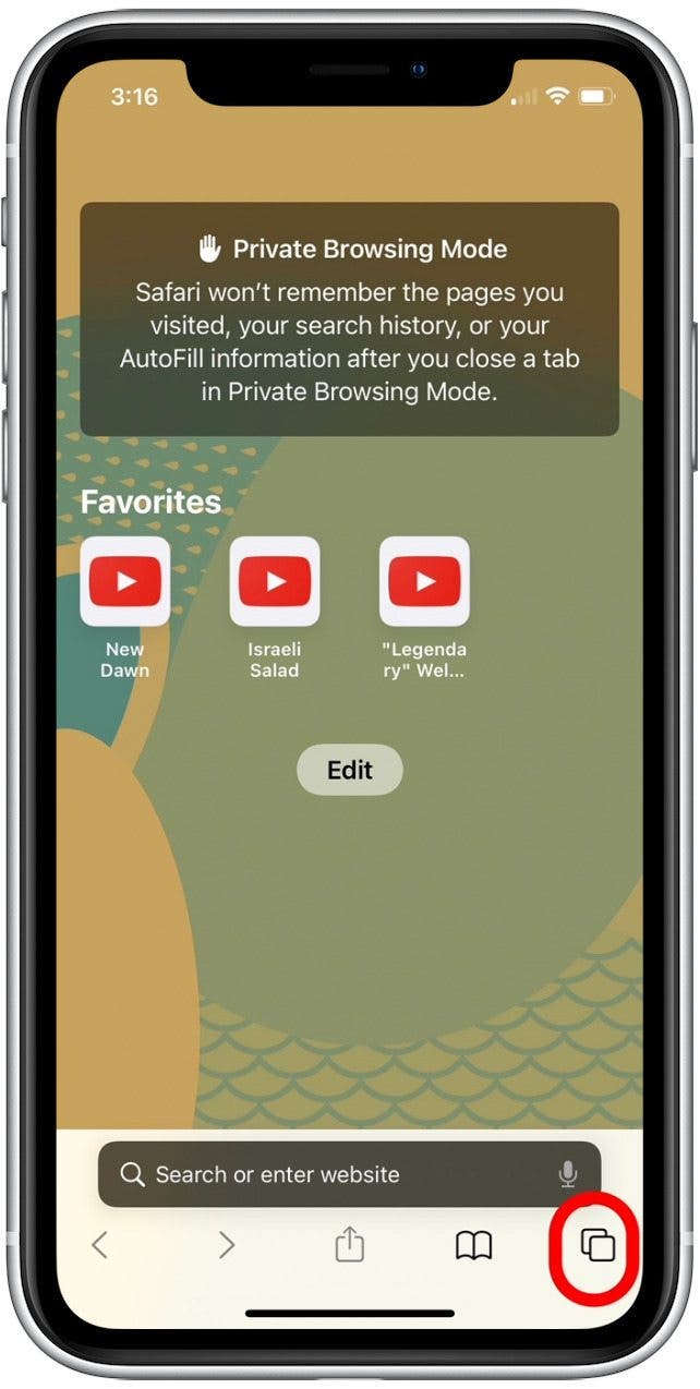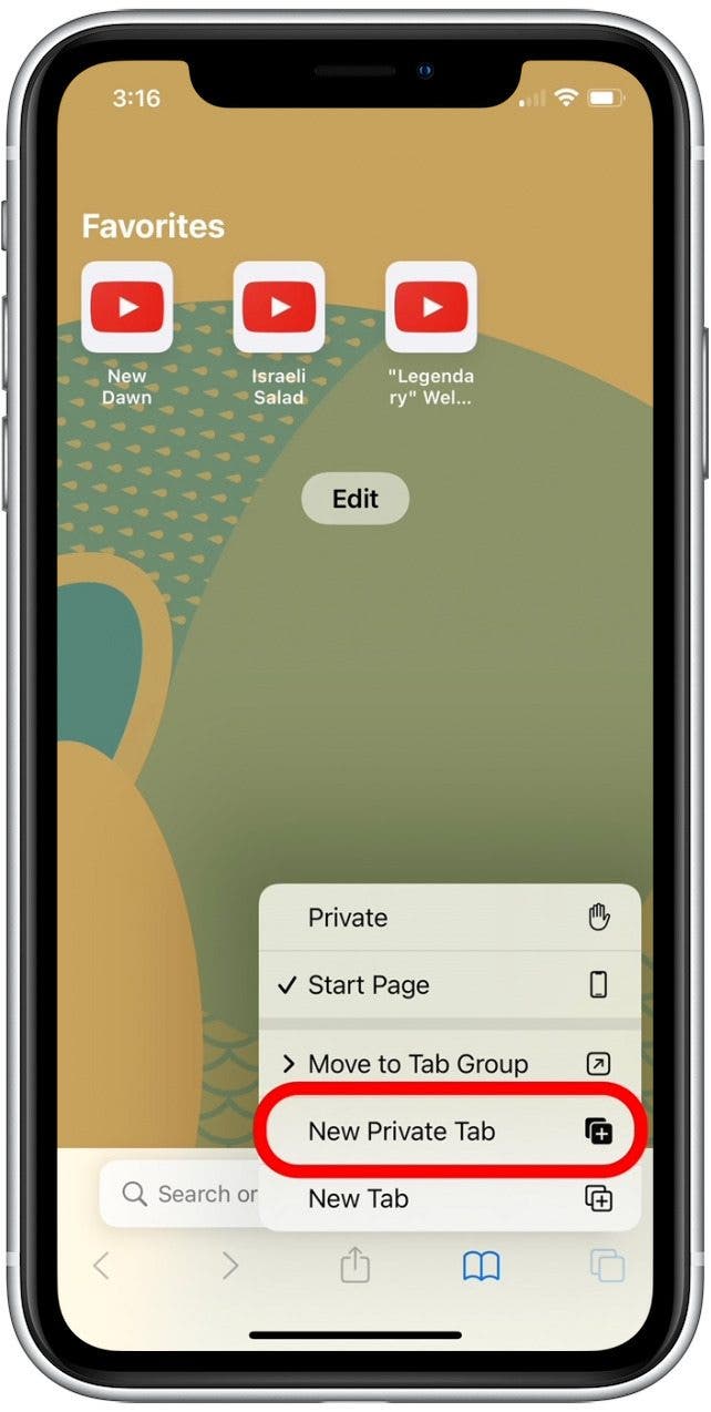 - 轻敲新的私人标签在隐私浏览模式下打开不同的选项卡。