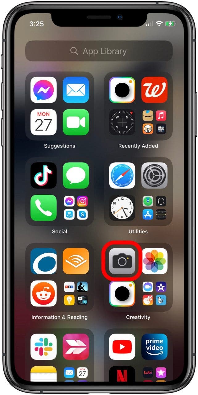 - 打开相机应用程序,从主屏幕或通过控制中心。