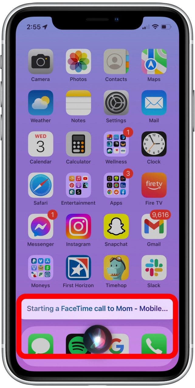 - 您还可以按住侧边按钮,或主页按钮如果您没有“侧面”按钮,请说“FaceTime”,然后说出您要呼叫的联系人的姓名。