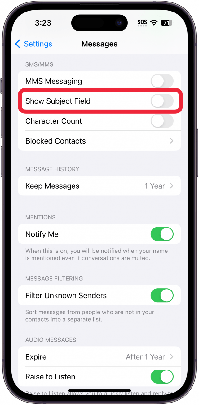 - 要在 iMessage 中添加或删除主题行,请打开“设置”应用程序,点击“消息”,然后点击“显示主题字段”切换按钮。