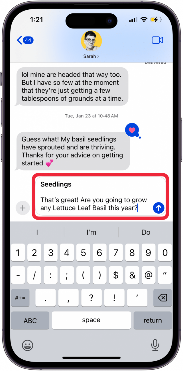 - 与电子邮件主题行类似,iMessage 主题行会添加粗体文本标题,以便您可以让收件人知道文本的内容。