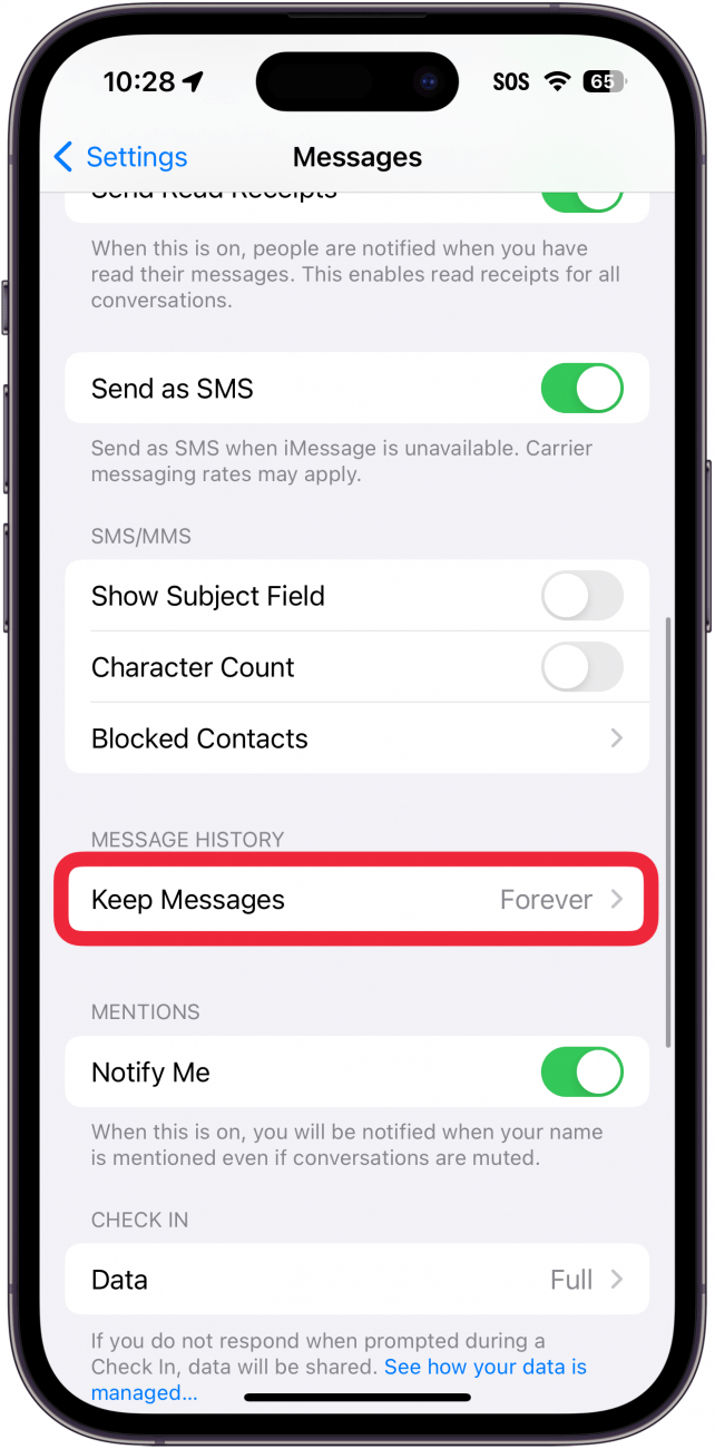 如果您的存储空间不足,您可以尝试一些技巧。但是,如果您决定让 iPhone 自动删除短信,则可以在“设置”应用中轻松进行设置。请注意,无法搜索已删除的消息,因此请确保在删除消息历史记录之前保存所需的所有信息。有关更多 iPhone 存储空间节省技巧,请查看我们的免费通讯。现在,介绍如何自动删除 iPhone 上的短信: