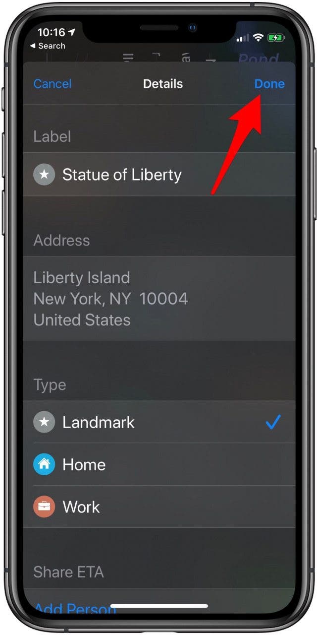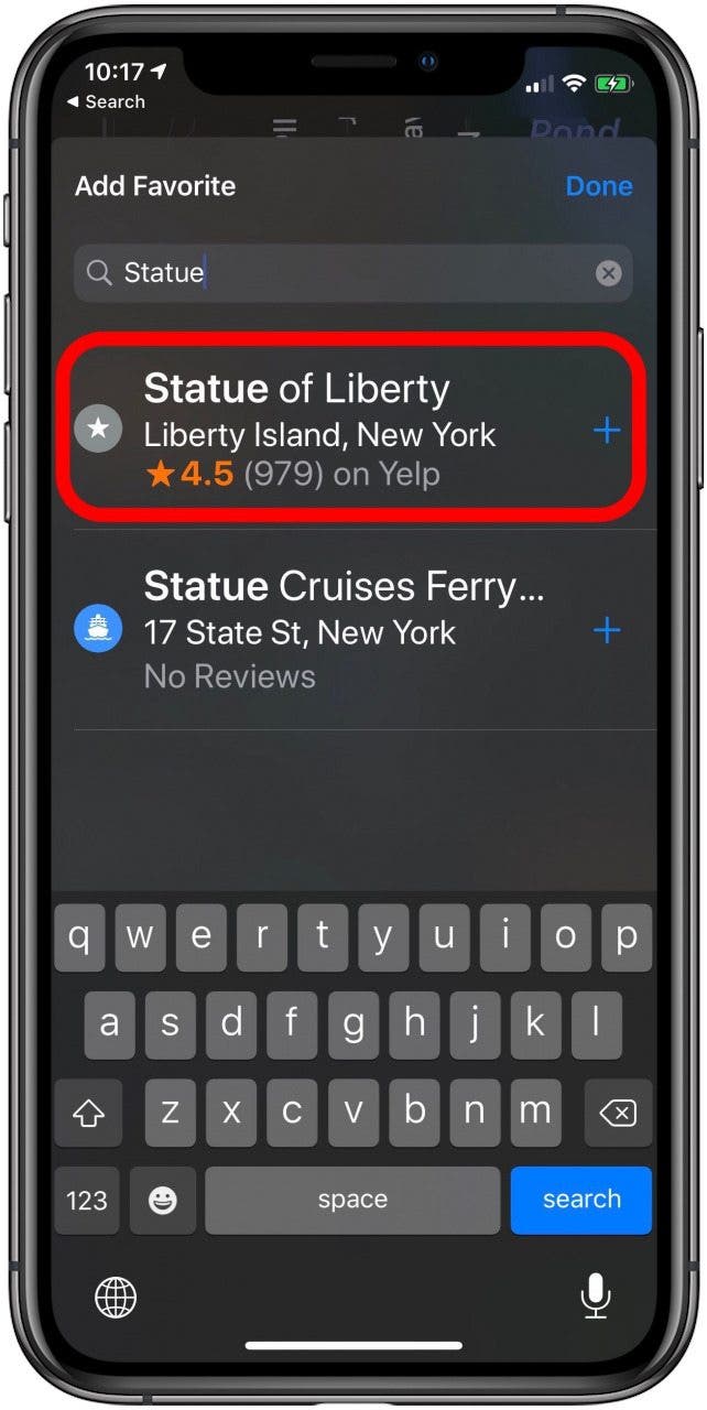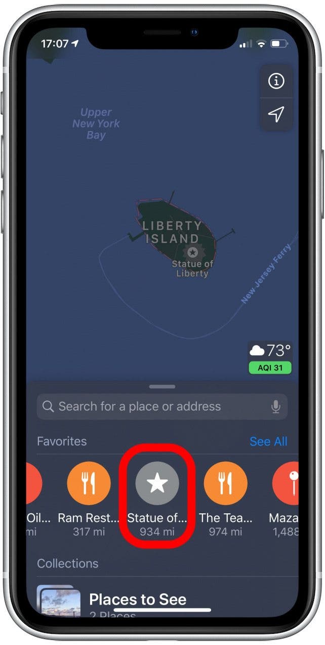在搜索栏中输入地址。或者,如果是地标,您可以按名称搜索。我将以自由女神像为例。