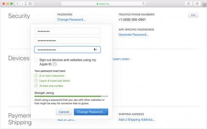 如上所述,您的 Apple ID 是您拥有的每台 Apple 设备上所有数据和购买信息的关键。您的 Apple ID 包括电子邮件地址和密码、您的联系信息和付款信息,以及您所有 Apple 帐户中使用的安全问题和代码。