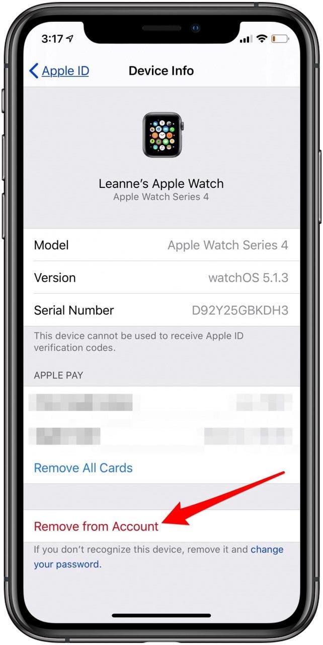 - 在帐户页面中点击您想要删除的设备,然后点击从帐户中删除在页面底部。