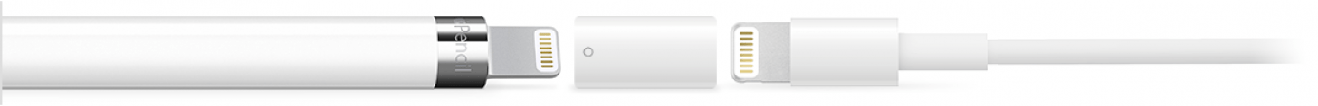 对于第一代 Apple Pencil,您可以使用 iPad 上的 Lightning 端口将其插入,也可以使用 Apple Pencil 随附的充电适配器。