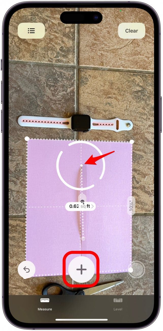 - 将点定位在测量起点的白色半圆中间,然后点击加号按钮。