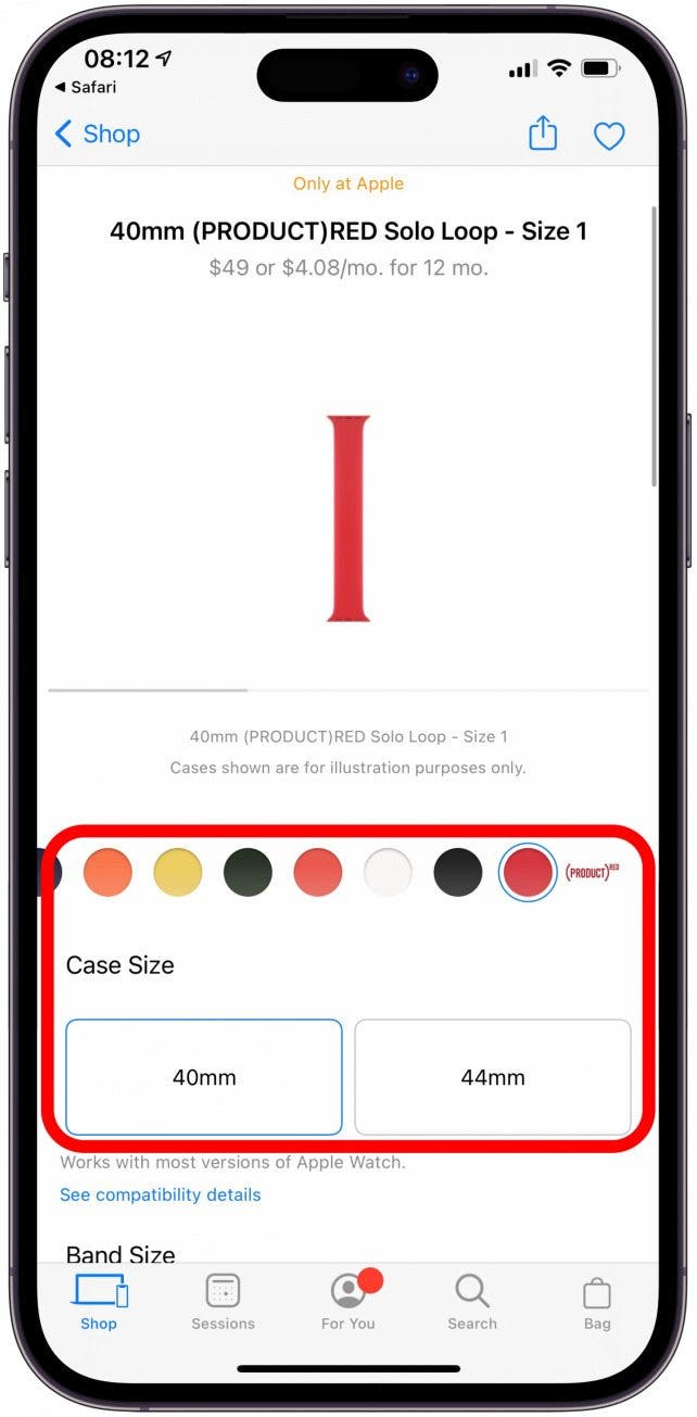 - 选择您的颜色和外壳尺寸。请记住,40 毫米适合 38 毫米手表,44 毫米适合 42 毫米手表。