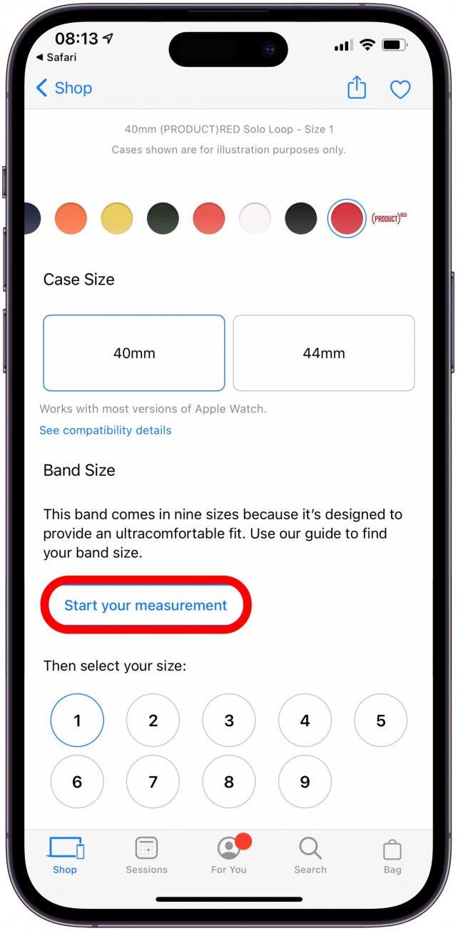即使您不打算在 Apple 网站上购买手环,您也可以使用其弄清楚要得到什么尺寸。假设您正在购买 Apple Watch,然后按照以下步骤操作。