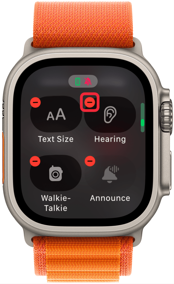 除非剧院模式打开,否则对讲机图标会自动激活。启用时它具有黄色背景。一旦你,您可以用它与其他拥有 Apple Watch 的人交谈。