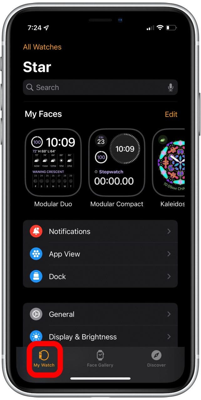 - 在您的 iPhone 上,打开苹果手表应用程序。