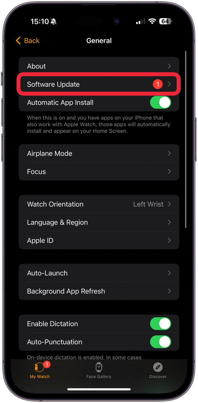 有时更新问题无需您的帮助即可自行解决。确保 Apple Watch 设置中的自动更新已打开。然后,只需在睡觉前将手机保持连接到 Wi-Fi,并将 Apple Watch 放在 iPhone 覆盖范围内的充电器上即可。以下是开启 Apple Watch 自动更新的方法:
