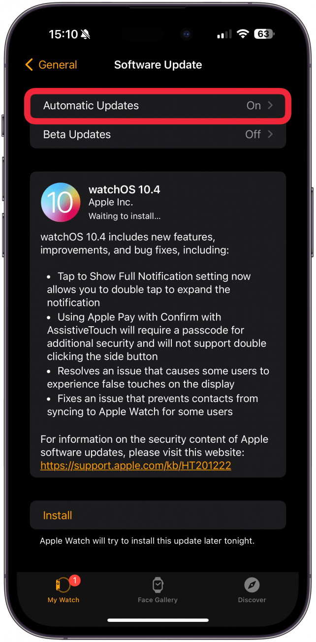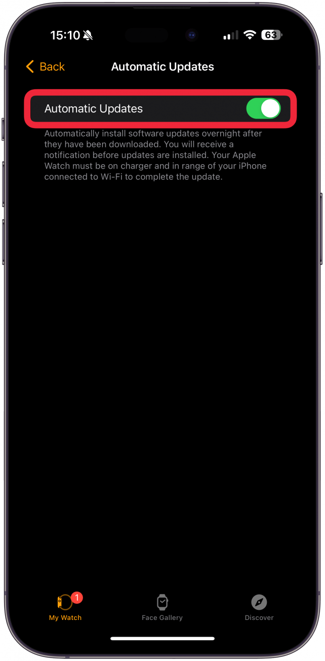 5. 尝试让您的 Apple Watch 自动更新过夜。