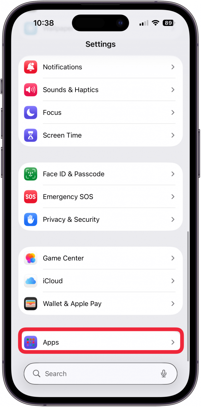 - 打开设置应用程序,向下滚动,然后点击应用程序。