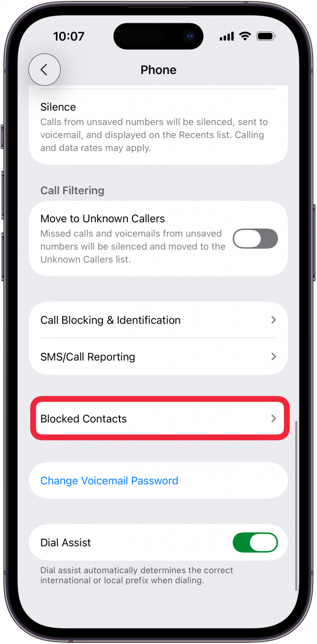 虽然这种情况很少见,但确实会发生。如果您在阻止的联系人列表中看到您尝试拨打的号码,请点击左上角的“编辑”按钮,然后点击该联系人旁边的减号图标。这将从您的阻止号码列表中删除该联系人,以便您可以致电他们。
