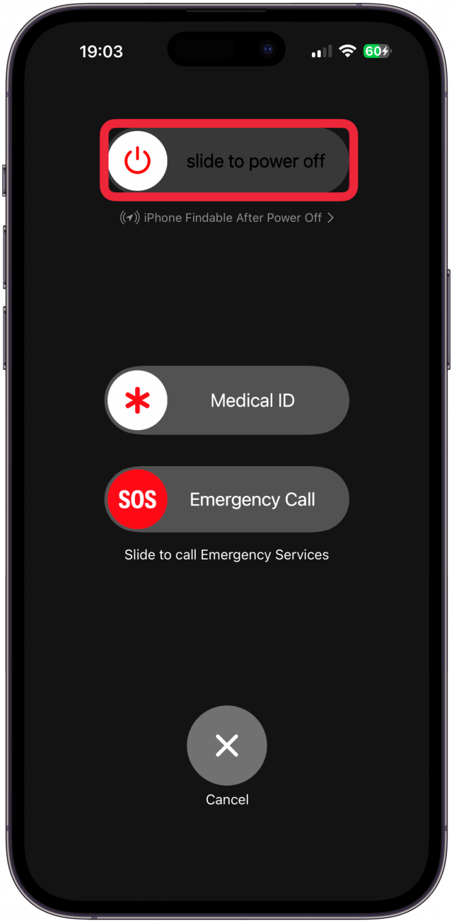 - 接下来,尝试一下通过持有侧边按钮和音量调高按钮,然后滑动顶部以关闭电源。等待几分钟,然后按住侧边按钮再次操作,直到看到 Apple 徽标。