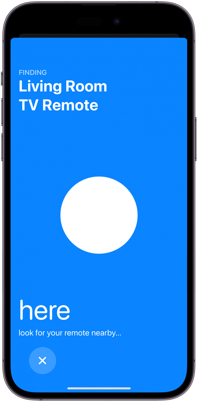 - 您的 iPhone 将帮助您找到遥控器。文字会从远到近发生变化,并且随着您靠近遥控器,蓝色圆圈会变大。