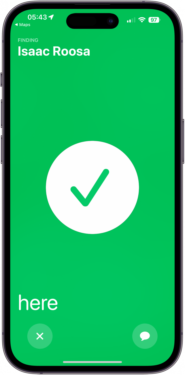 - 一旦您联系到您的朋友,屏幕将变为绿色,箭头将变为复选标记。