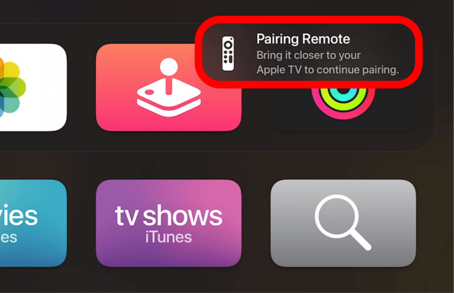 - 将您的设备尽可能靠近 Apple TV,然后等待它消失。