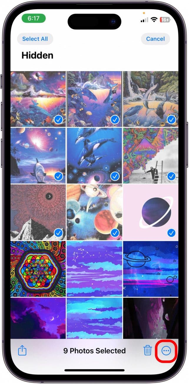 - 选择要取消隐藏的照片,然后点击三个点。