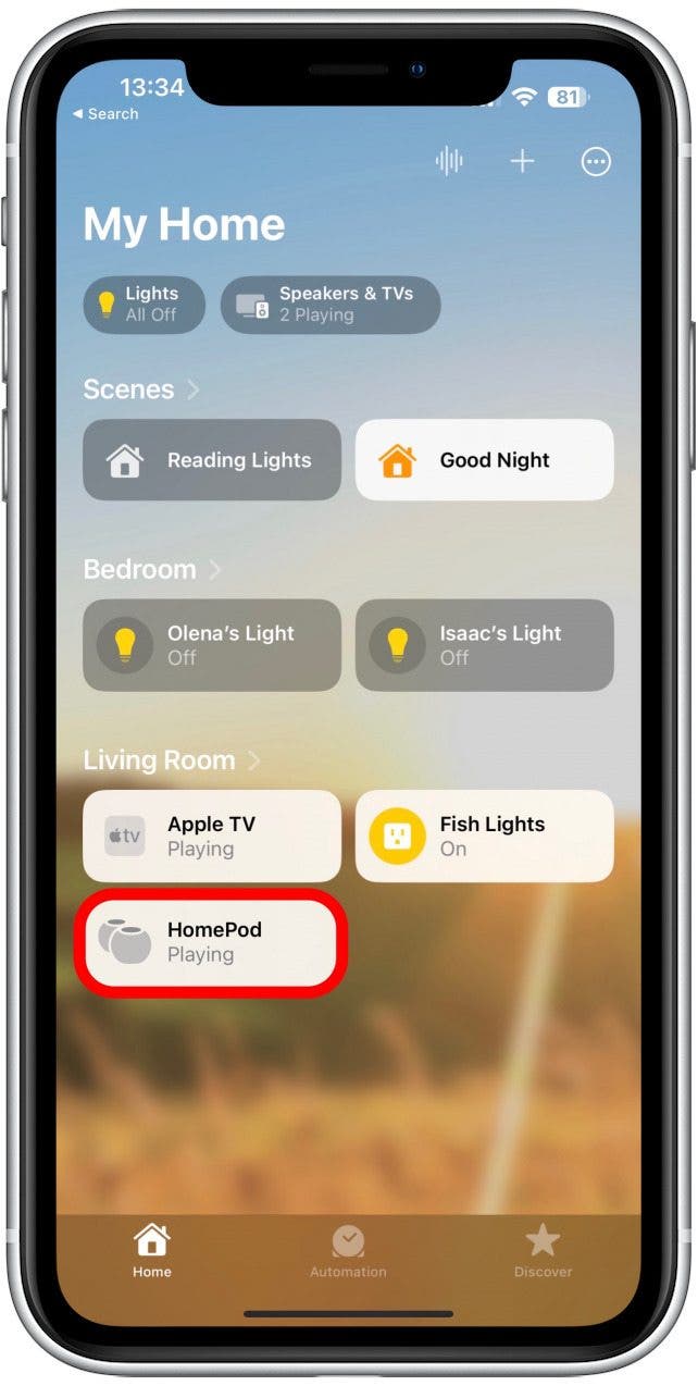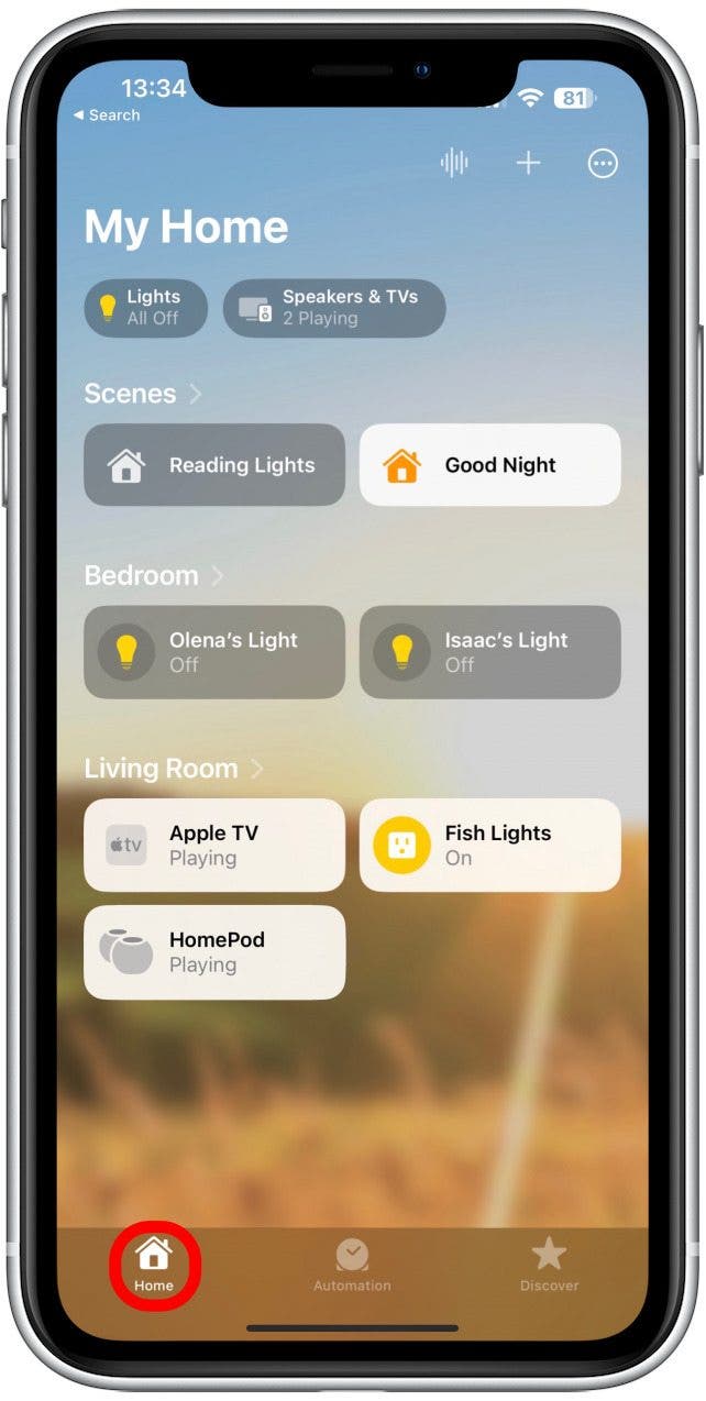 - 打开家庭应用程序在您的 iPhone(或其他 Apple 设备)上。