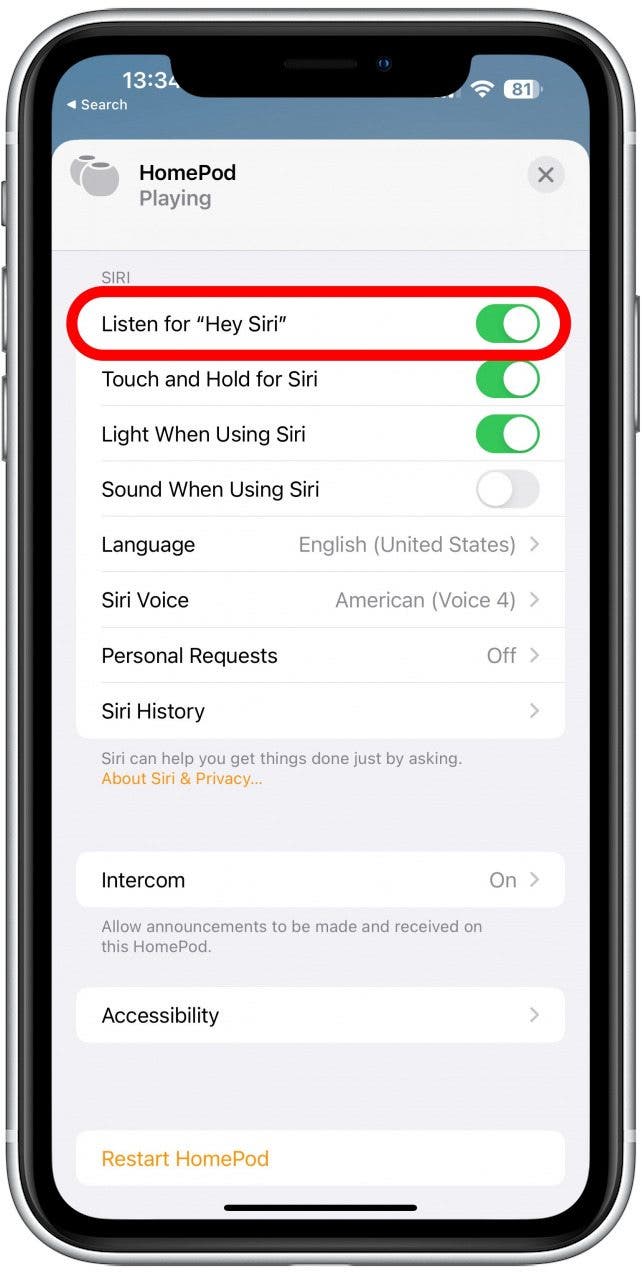 告诉 Siri 停止监听的最简单方法是说“嘿 Siri,停止监听”或“嘿 Siri,禁用嘿 Siri”。然后 Siri 会要求您口头确认“是”。不过,您也可以在家庭应用程序中将其关闭,这看起来更让人放心。请记住,随着 iOS 16 的发布,家庭应用程序进行了重新设计,因此,如果您的应用程序看起来有所不同,请考虑在执行这些步骤之前。