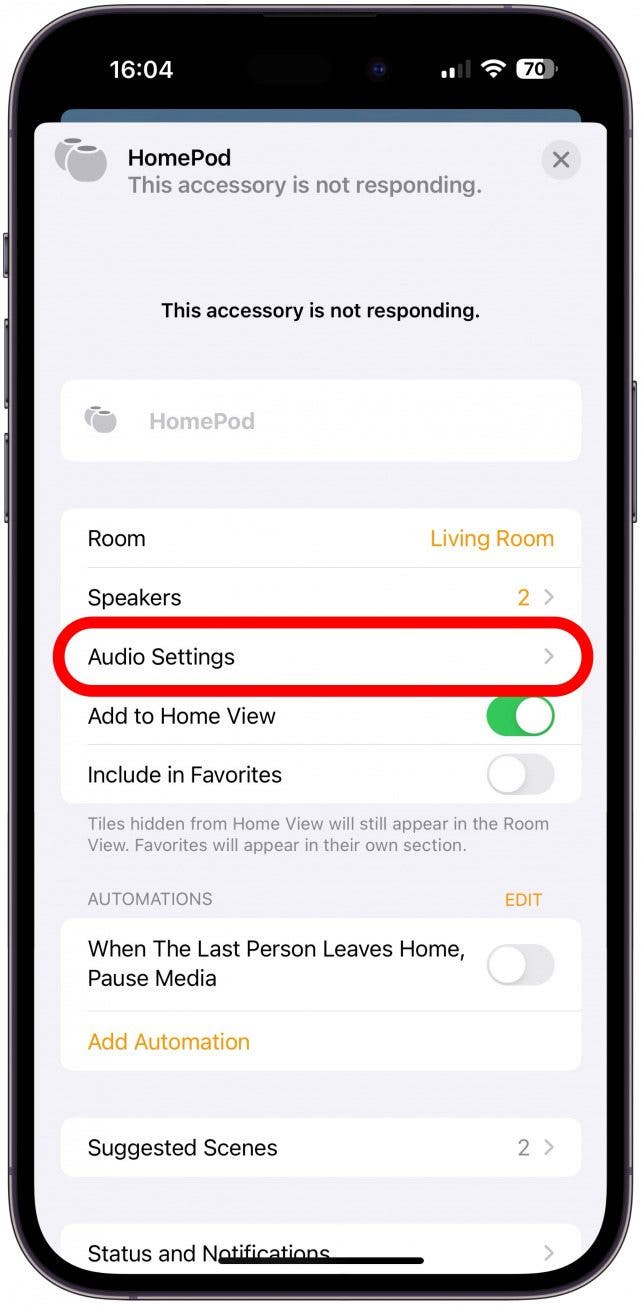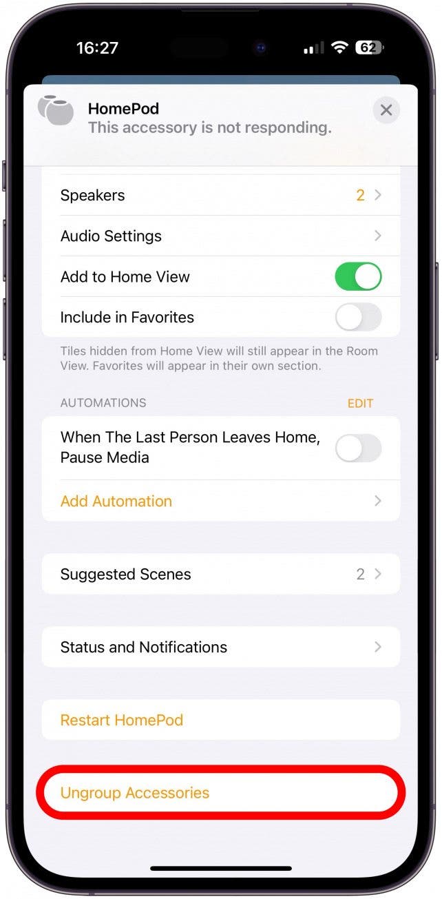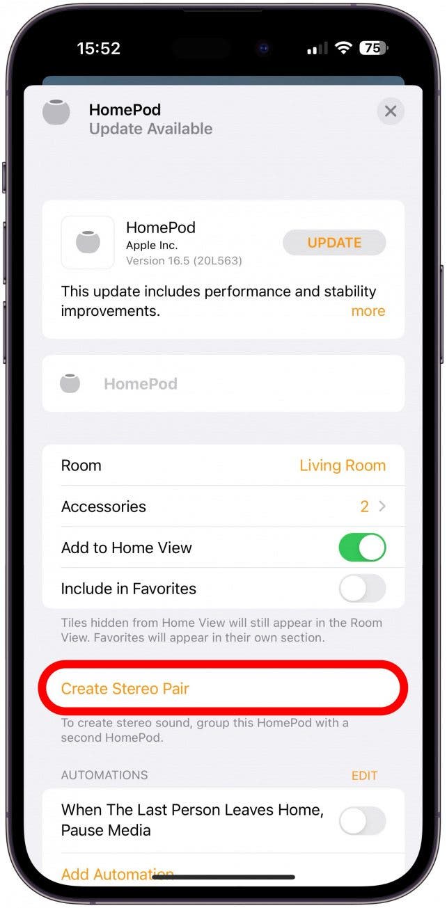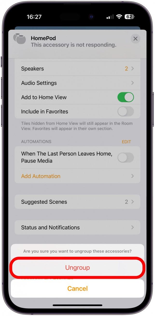 - 打开家庭应用程序并长按您想要取消配对的立体声配对。