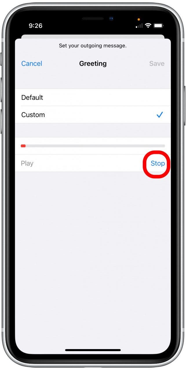 - 轻敲记录开始录制您的语音邮件问候语。
