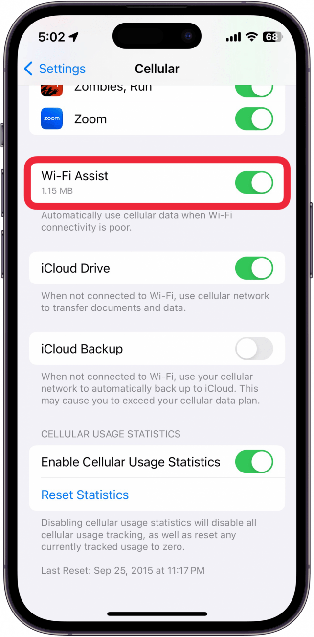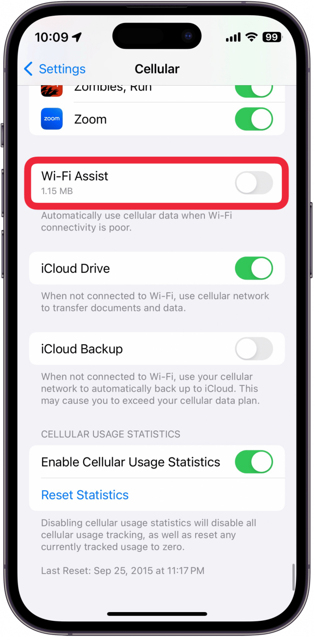 - 如果您的数据流量有限,您可以从 iPhone 的 Wi-Fi 设置中关闭 Wi-Fi 助手。