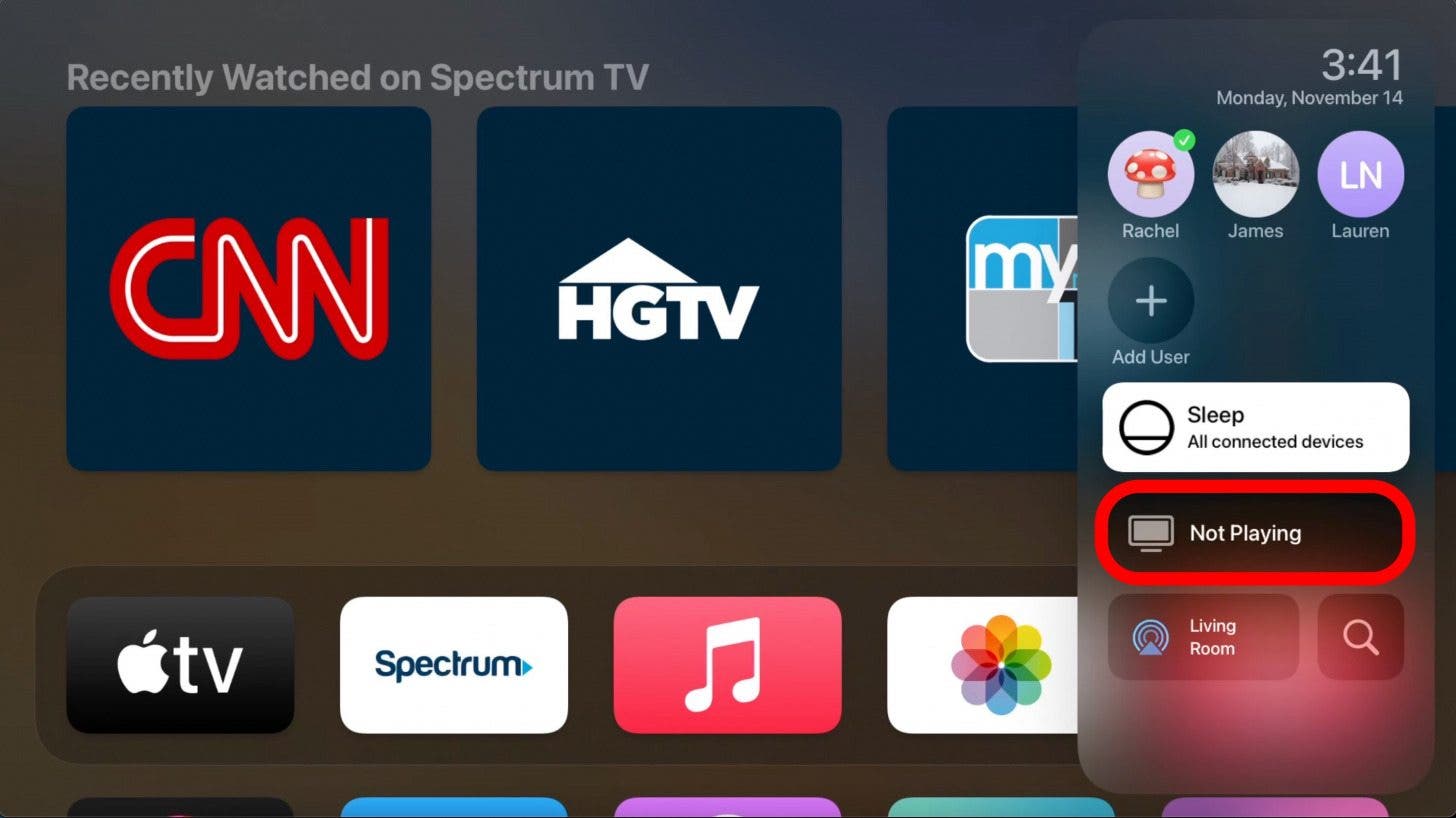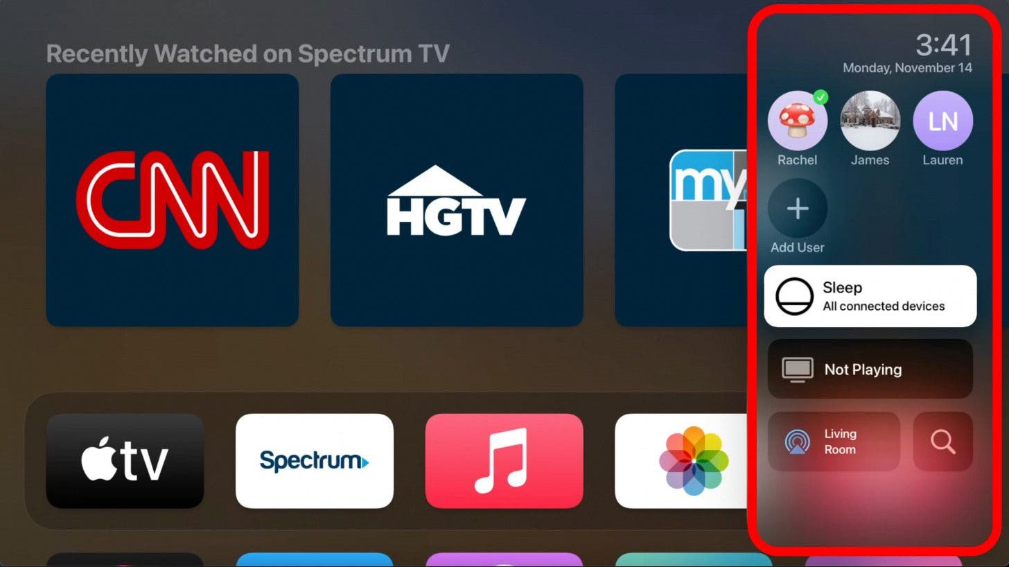 - 日期下方是有权访问此 Apple TV 的用户列表。您可以通过单击要切换到的用户配置文件来轻松切换用户配置文件。