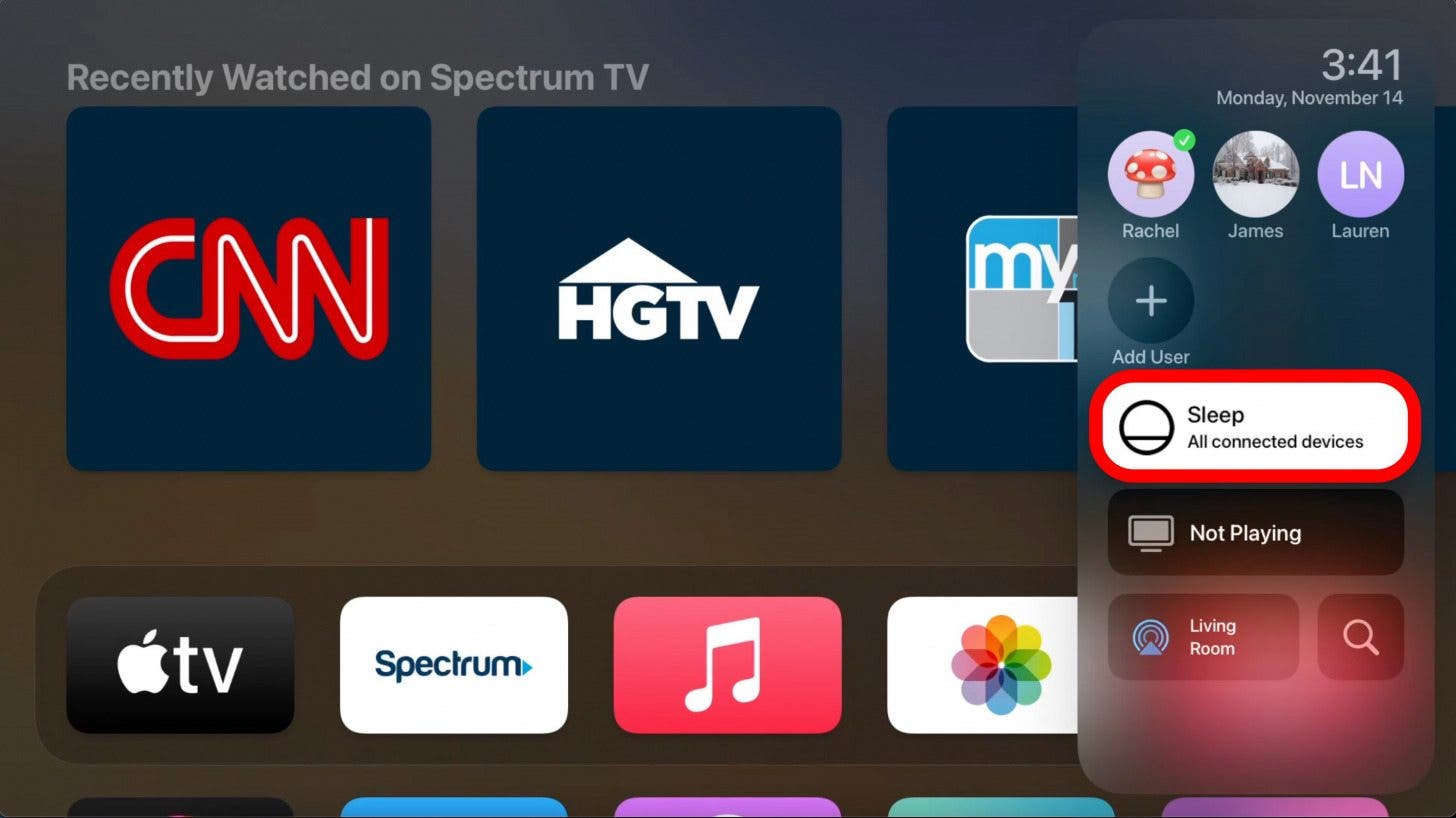 - 菜单上的下一个项目是“睡眠”,点击该项目后,Apple TV 就会进入睡眠模式。对我来说,这也会自动关闭我的电视,但这可能取决于您电视的品牌和型号。