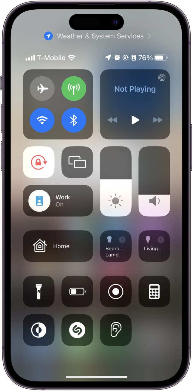 - 这将打开控制中心。您看到的控件可能与下面的屏幕截图略有不同,正如我所看到的到我的。