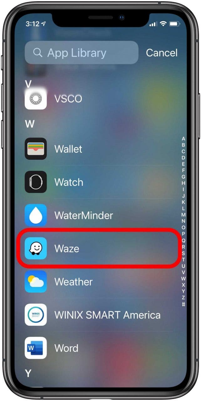 - 打开你的应用程序库滑动到最后一个主屏幕页面,然后再次向左滑动。