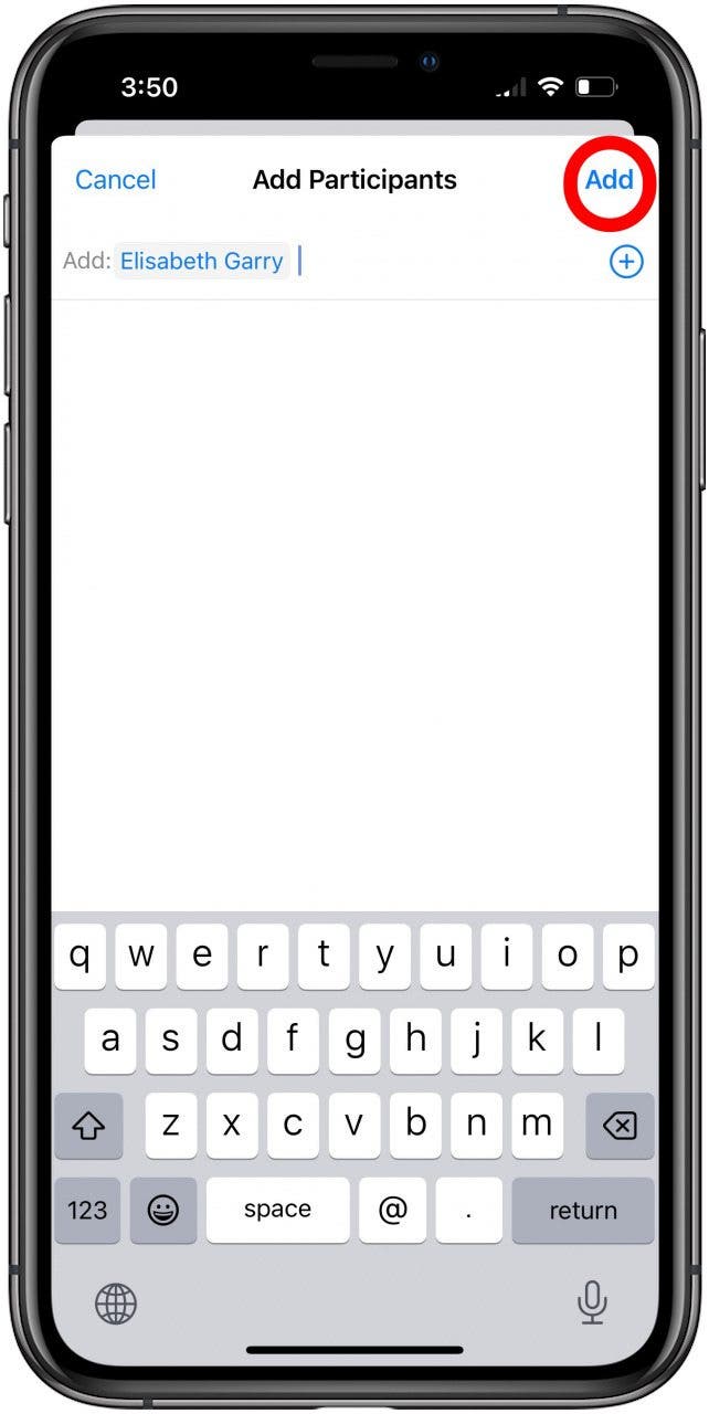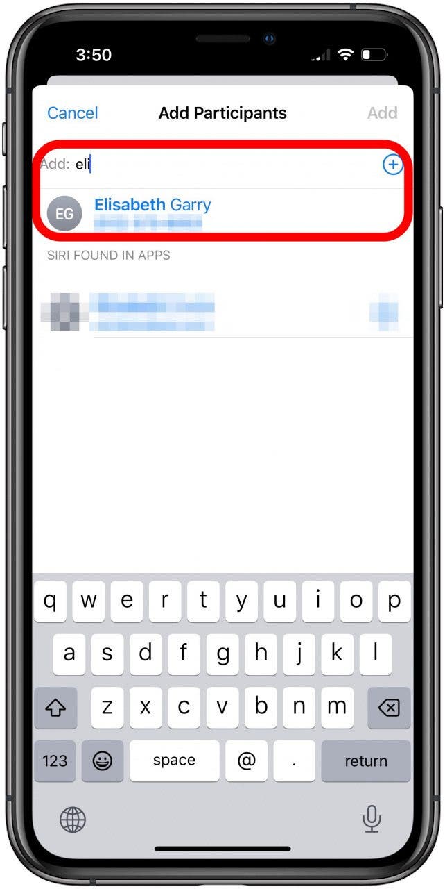 - 输入您要添加的人员的姓名、电话号码或电子邮件地址。