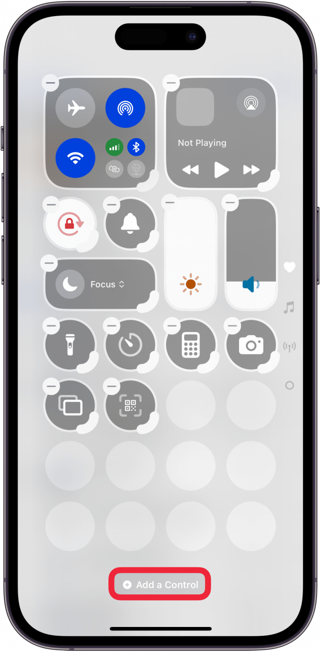 - 现在控制中心处于编辑模式,点击添加一个控件。