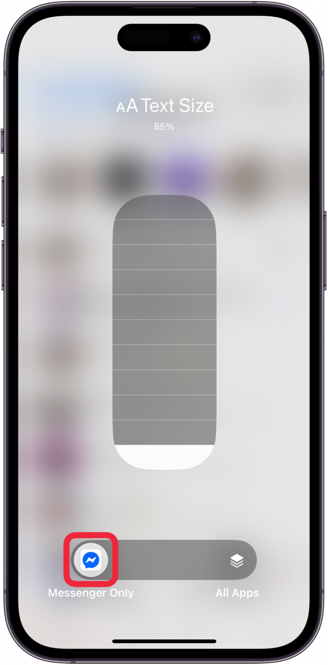 - 触摸并按住文字大小控制,然后点击仅限信使(名称会根据您打开的应用程序而变化)或所有应用程序,选择是仅增加您正在使用的应用程序的字体大小,还是增加所有应用程序的字体大小。