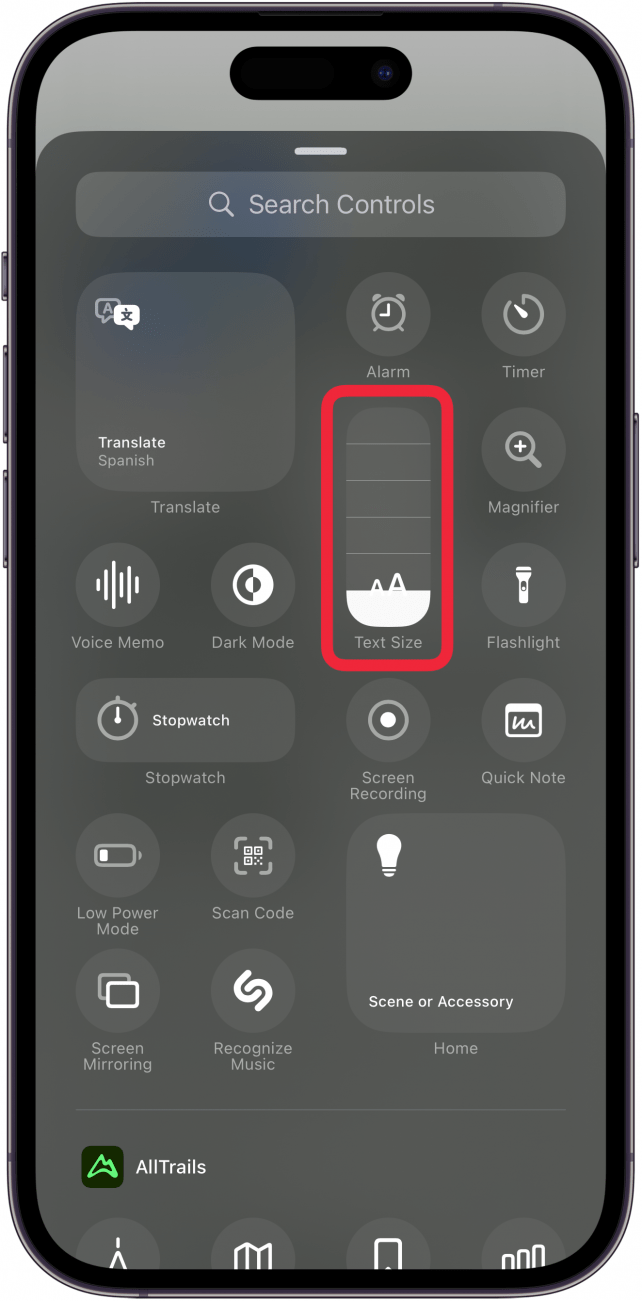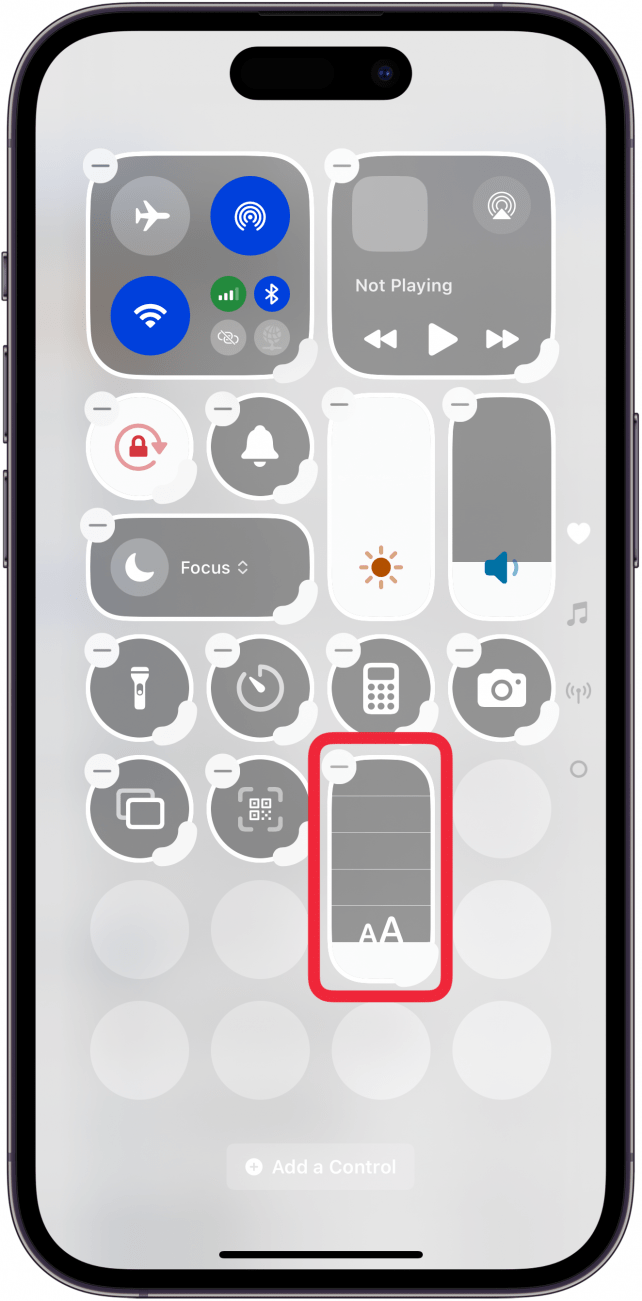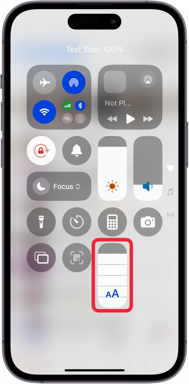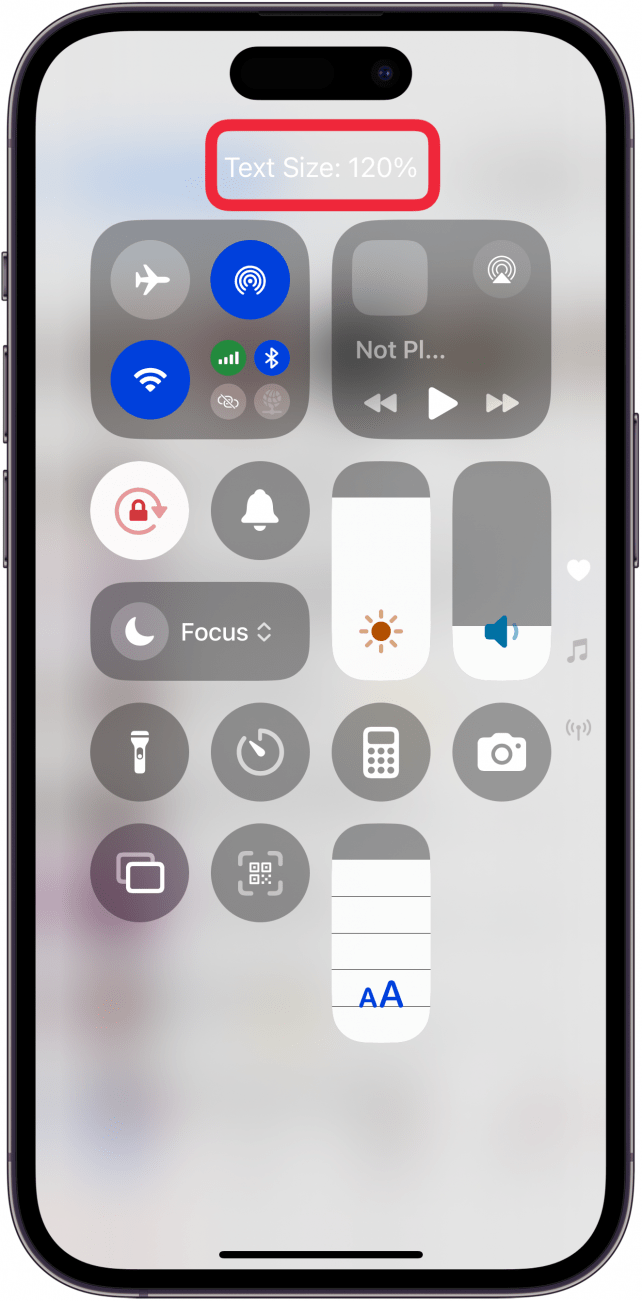 - 再次点击控制中心中的空白处,您将退出编辑模式。现在,每当您打开控制中心时,您都会看到文本大小控件。