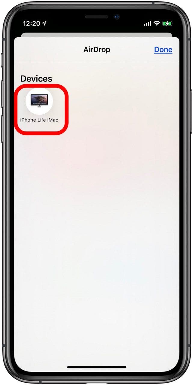 - 轻敲空投。一旦您通过 AirDrop 方式连接到这台计算机,您的 iPhone 可能会提供点击带有 AirDrop 图标的计算机图标的选项,这样您以后就可以跳过第四步。