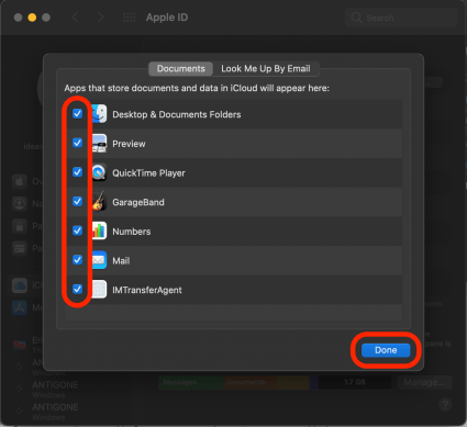 - 选中旁边的框i云盘如果尚未检查,请单击它。