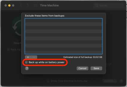 为了获得最佳效果,请确保您的 Mac 在开始执行备份之前已连接电源。