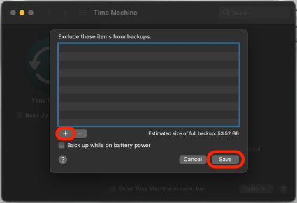 - 现在您可以点击选项选择要从备份中排除的项目(如果有)。