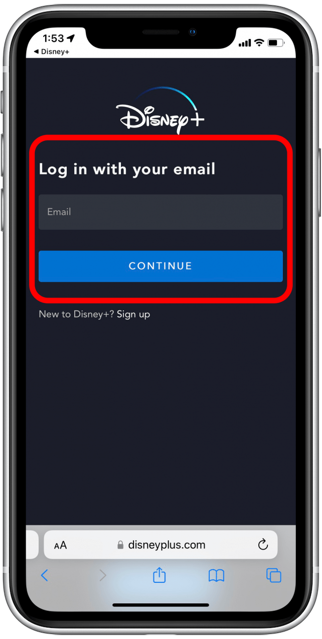 根据您的迪士尼+帐户的具体情况,此选项可能会有所不同,但应该会将您重定向到您的。 - 如有必要,请在浏览器中登录您的 Disney Plus 帐户。