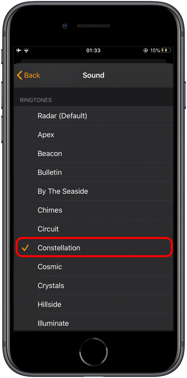 - 选择您喜欢的铃声;旁边会出现一张支票。