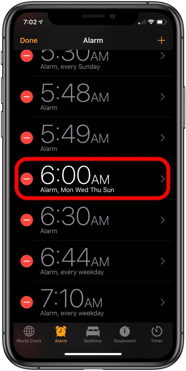 - 如果您正在编辑现有闹钟,请点击要为其选择新铃声的闹钟。