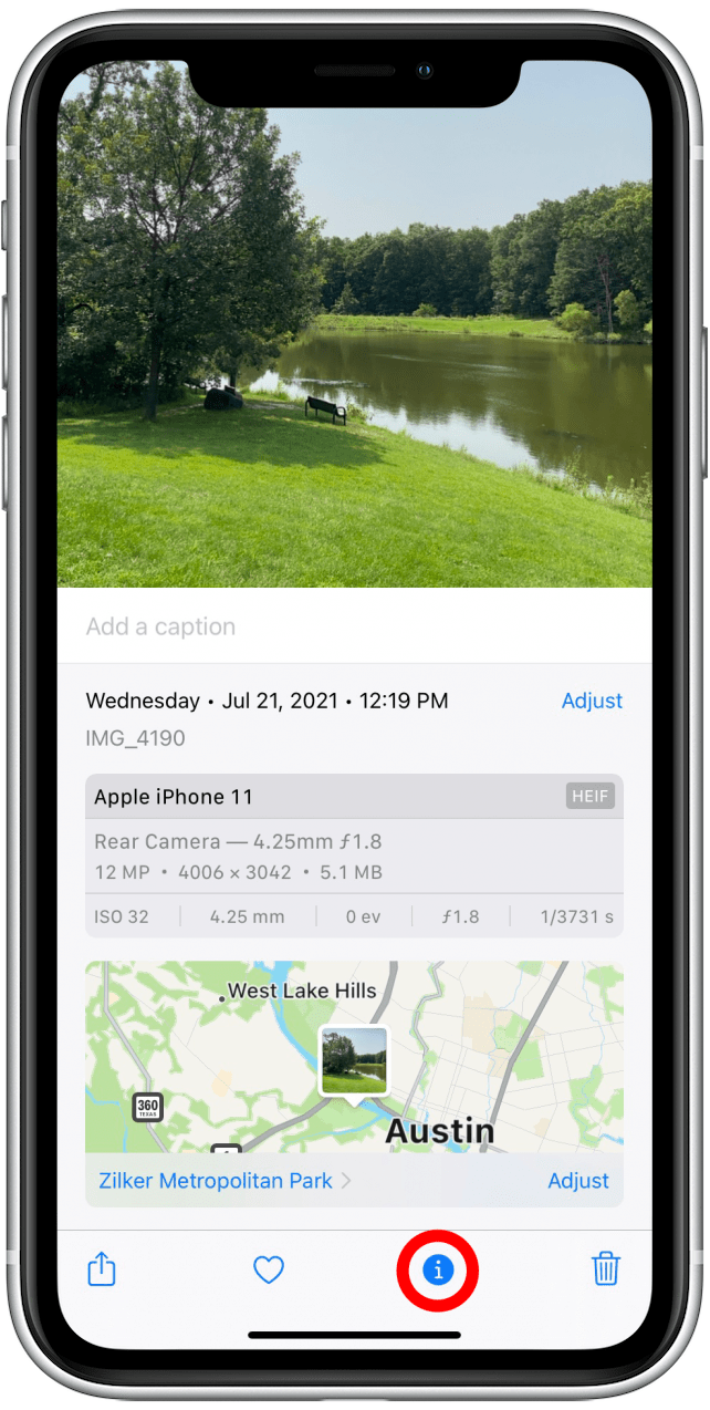 - 您将返回到上一个屏幕。点击信息图标再次返回“照片”。