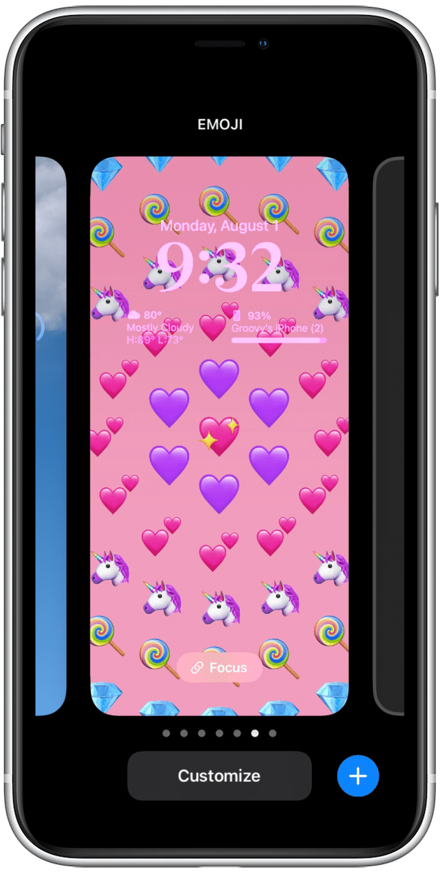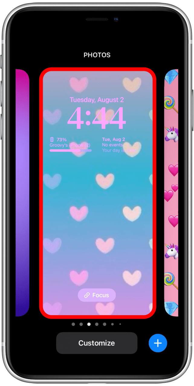 - 长按锁定屏幕,直到看到定制和重点按钮。
