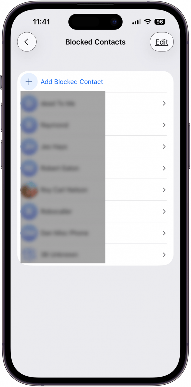 - 您还可以在 FaceTime 和消息中查看被阻止的联系人。