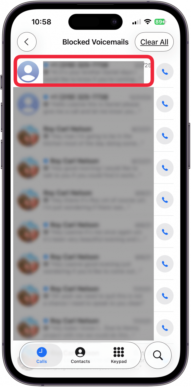 - 现在,您将在 iPhone 上看到来自被屏蔽号码的所有语音邮件。点击消息即可查看转录(这可能不适用于每条消息)。
