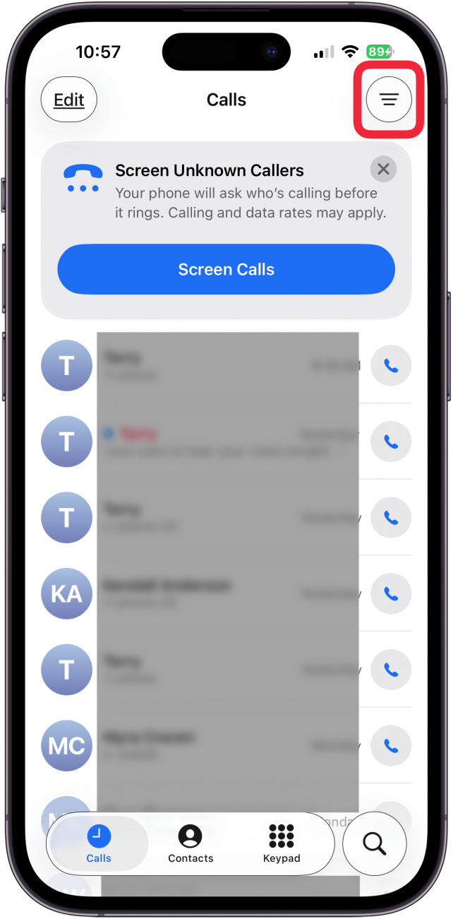 - 如果您运行的是 iOS 26 或更高版本,请点按语音信箱在右上角的菜单中。