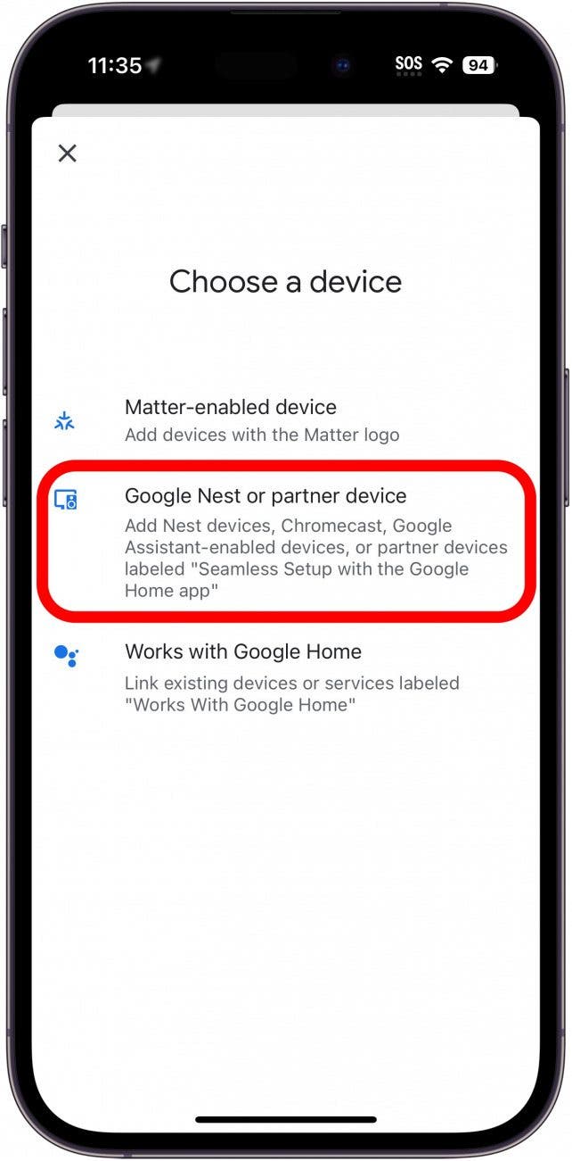 - 轻敲Google Nest 或合作伙伴设备(这包括 Chromecast)。